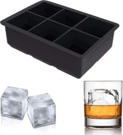 JGR – IJsblokjesvorm – Groot – 8 Blokken – Vierkant – Vaatwasserbestendig – Siliconen – Zwart