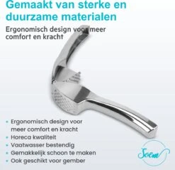 SOEM© Knoflookpers Met Ergonomische Handgreep Ook Geschikt Voor Gember – Horeca Kwaliteit – Mat