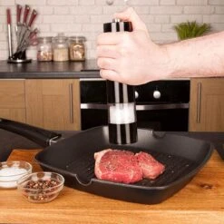 De peper en zout molens zijn elektrisch en hebben een dosering functie waardoor je snel en gemakkelijk de perfecte hoeveelheid zout en peper op jouw maaltijd hebt. Je hebt maar ĂŠĂŠn hand nodig om de kruiden op je maaltijd te strooien, je hoeft alleen maar op de knop te drukken. De vermalingsgraad van de molens kan je gemakkelijk zelf instellen.