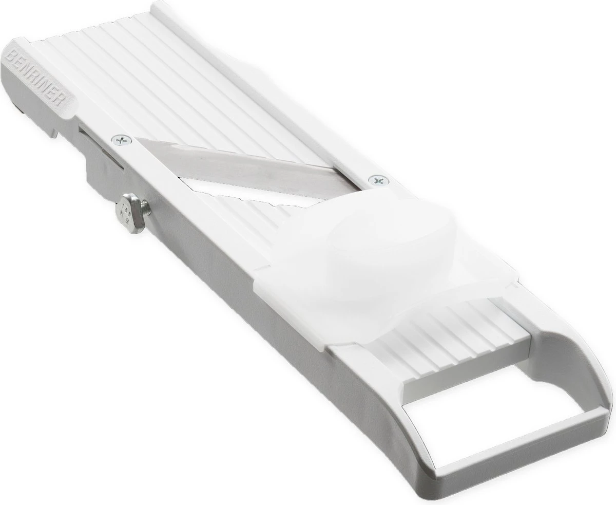 De Benriner mandoline is al jaren een begrip onder koks. Met een vlijmscherp – op dikte – instelbaar mes kunnen flinterdunne plakjes worden gemaakt.