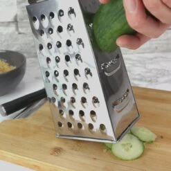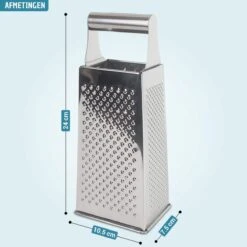 Met deze tafelrasp je heel eenvoudig de lekkerste kazen, groenten en chocolade. Zet deze handige, roestvrijstalen rasp op tafel en haal het eten er langs. Ideaal voor de echte fijnproevers! Op de vier vlakken van deze tafelrasp staat precies waar je het type rasp voor kunt gebruiken. Zo rasp je de kaas met speels gemak in poeder, snippers of grove vlokken. Met deze topper breng je je gerechten perfect op smaak. Smullen maar!