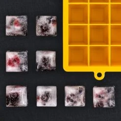 Verkrijgbaar in prachtige, sprekende kleurencombinaties van olijfgroen en mineraal rood, grijsblauw en lichtblauw, grijs en geel en zwart en geel. Kies de silicone ijsblokjesvorm welke bij je past. De vorm blijft flexibel, waardoor je het ijs gemakkelijk uit de vorm kunt halen. Deze ijsblokjesvorm silicone mag niet ontbreken in jouw keuken.