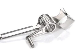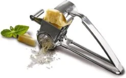 Dankzij zijn slanke vorm en handige draaimechanisme heeft deze rasp een uniek design. Plaats een stuk kaas in de houder van de rasp en knijp de handrasp stevig dicht. Gebruik je andere hand om te draaien. Ben je link- of rechtshandig? Dat maakt niet uit! Deze handrasp is op beide manieren te gebruiken.