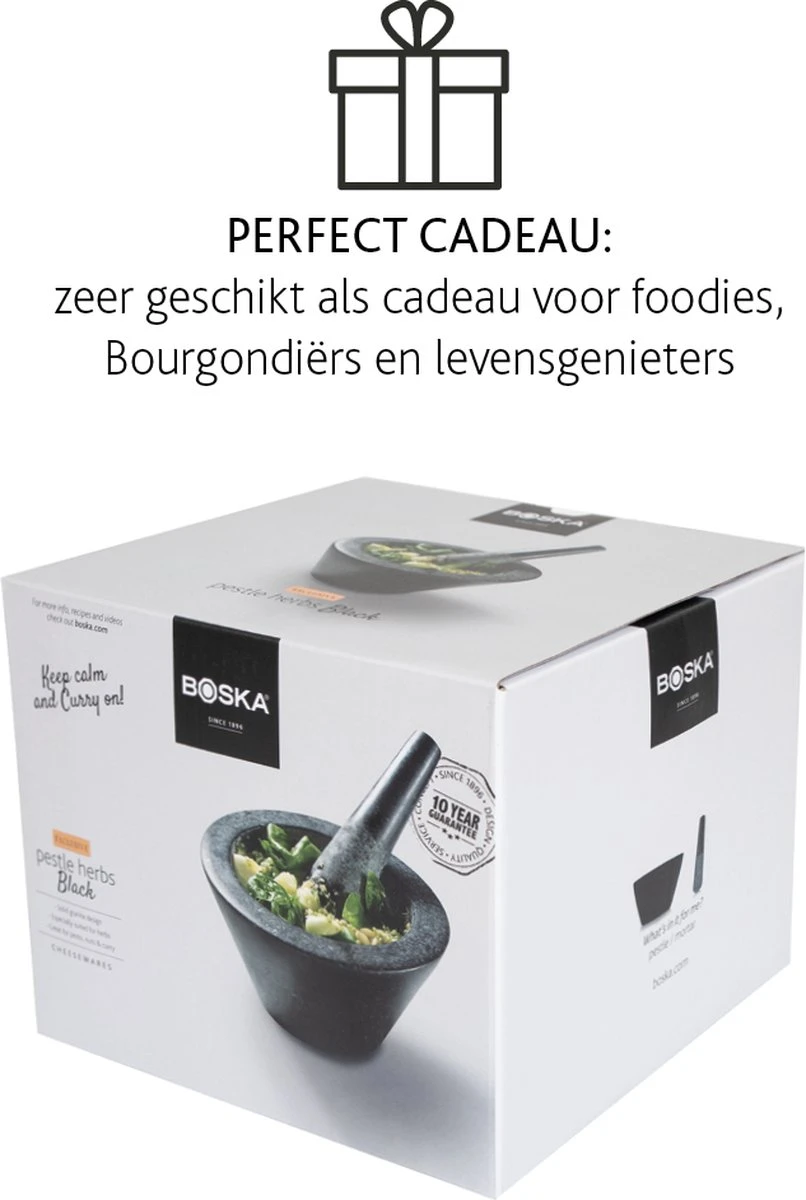 Maal grove peper- en zoutkorrels fijn of gebruik deze vijzel om andere kruiden zoals rozemarijn en tijm te vermalen. Hij is gemaakt van stevig graniet, stijlvol en zeer gebruiksvriendelijk. Ben je klaar met koken? De vaatwasser maakt hem weer helemaal schoon en klaar voor het volgende gebruik. Je krijgt standaard 10 jaar garantie op dit product. Zo geniet je nog jarenlang van de lekkerste versgemalen kruiden.