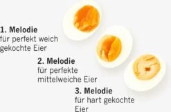 Wil je een zachtgekookt eitje? Haal ze er dan uit wanneer het PiepEi ‘Don’t worry be happy’ begint te spelen. Weerklinkt de melodie van ‘De vier seizoenen (Vivaldi)’? Dan heb je een perfect medium eitje! Wanneer de wekker ‘Oh happy day’ begint te spelen heb je een heerlijk hardgekookt ei.