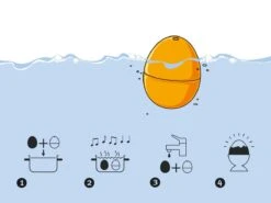 Altijd het perfect gekookte eitje met het 50’s Hits PiepEi van Brutus Kookt. Bewaar je PiepEi bij de eieren zodat het dezelfde temperatuur heeft, kook het PiepEi met de eieren mee en het zal diverse melodietjes afspelen: ”Take on Me” (voor zachtgekookt), “99 Red Balloons” (middel), “Just can’t Get Enough” (hardgekookt).