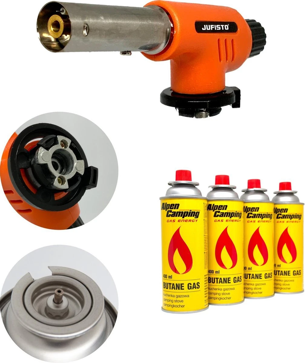 ✓ Inclusief 4 butaan gasflessen die lang meegaan.