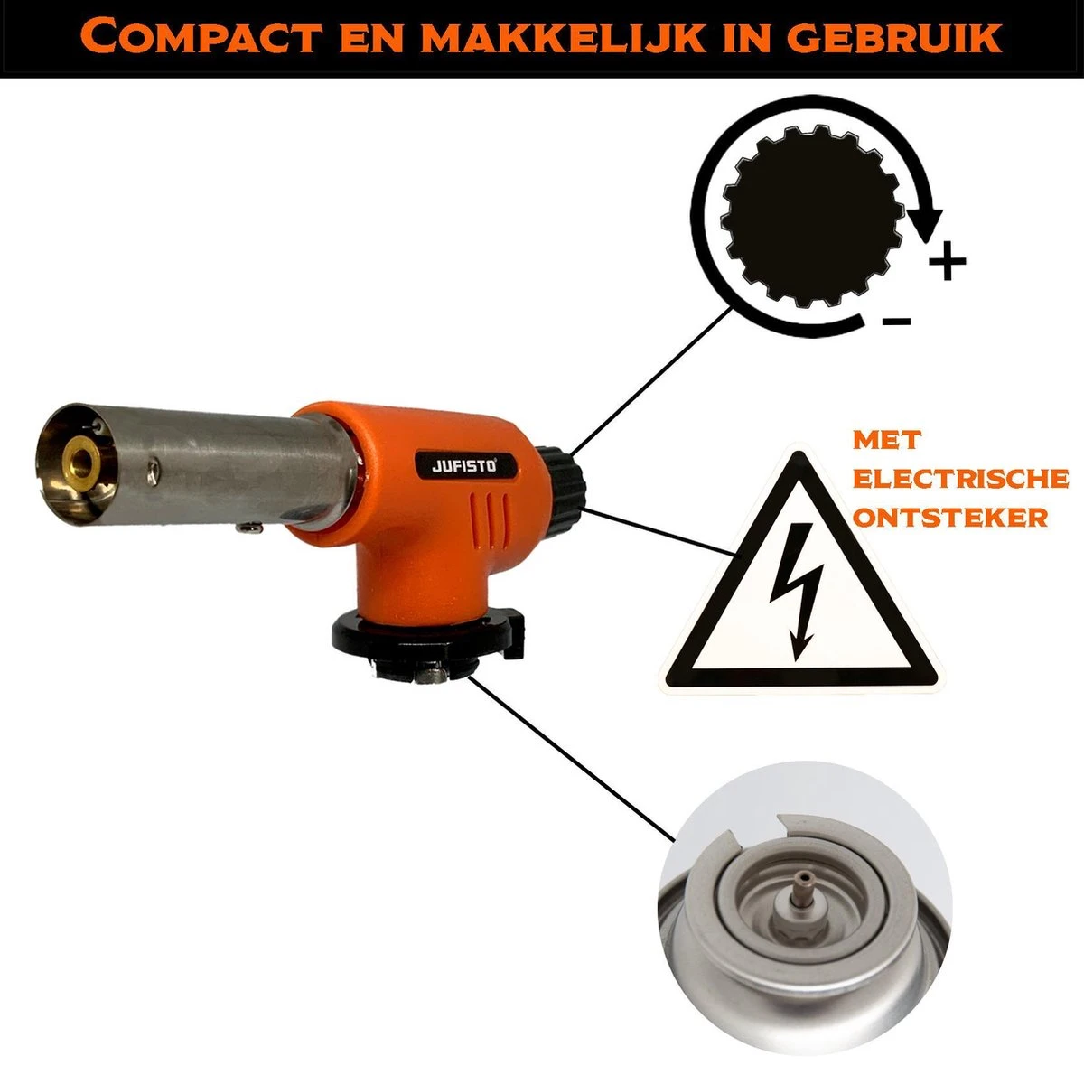 Lees voor gebruik nog de veiligheidsvoorschriften aan de achterkant van het product. Na gebruik de brander loskoppelen van de gas/butaan fles en opbergen.