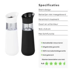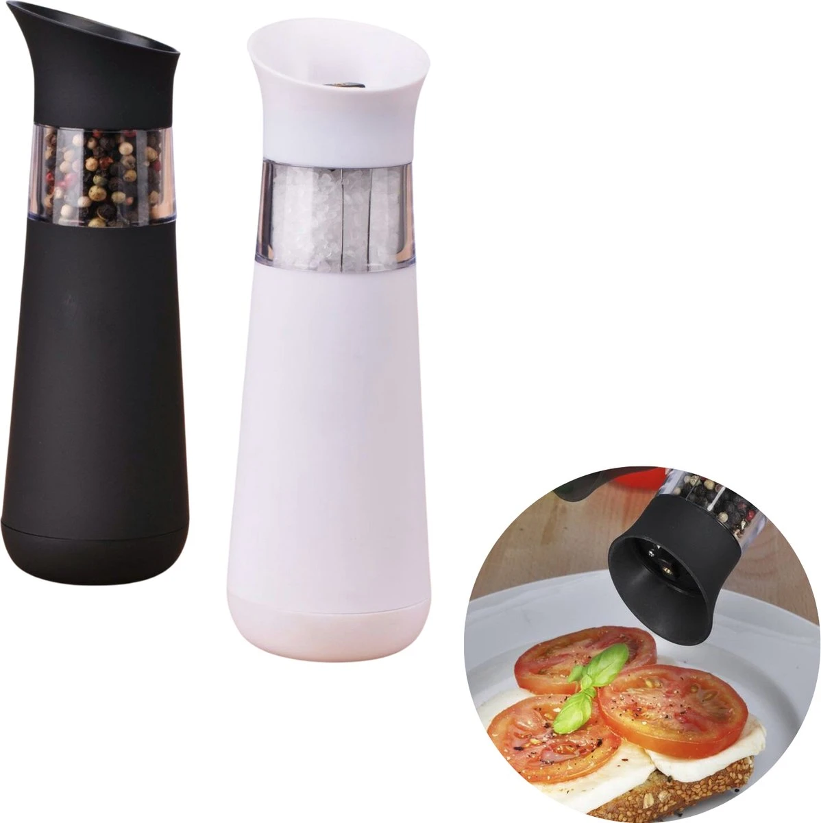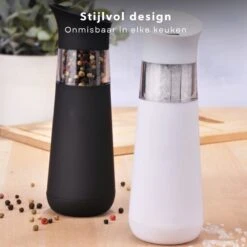 Geef uw eten op eenvoudige wijze smaak met onze elektrische zout- en pepermolen. Als u op zoek bent naar een gemakkelijke manier om uw eten op smaak te brengen, is onze elektrische zout- en pepermolen perfect voor u. Met een instelbare maalgraad en een lichtfunctie is het gemakkelijk om elke keer de perfecte hoeveelheid kruiden te krijgen. Bovendien zorgt het soft-grip ontwerp ervoor dat u hem gemakkelijk kunt vasthouden, zelfs met natte handen.