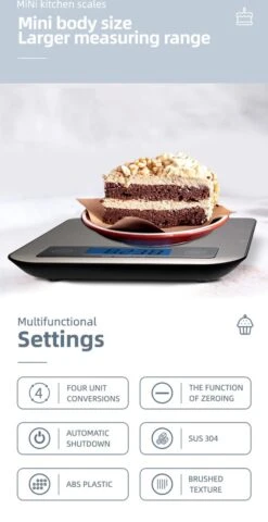 Deze keukenweegschaal kan zowel gram als ml wegen. Hierdoor kan je ook vloeistoffen wegen, zoals water of melk. Naast dat is het bereiden van buitenlandse gerechten ook geen probleem, want hij meet ook lb en oz. Met de knop Unit kan je gemakkelijk wisselen van maateenheid. Je kiest zelf of je dat doet in kilo’s, pounds of stones. Het maximale toelaatbare gewicht dat deze personenweegschaal kan meten is 10 kilo. Op het digitale scherm lees je duidelijk je gewicht af.