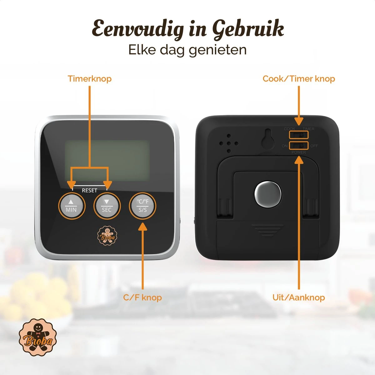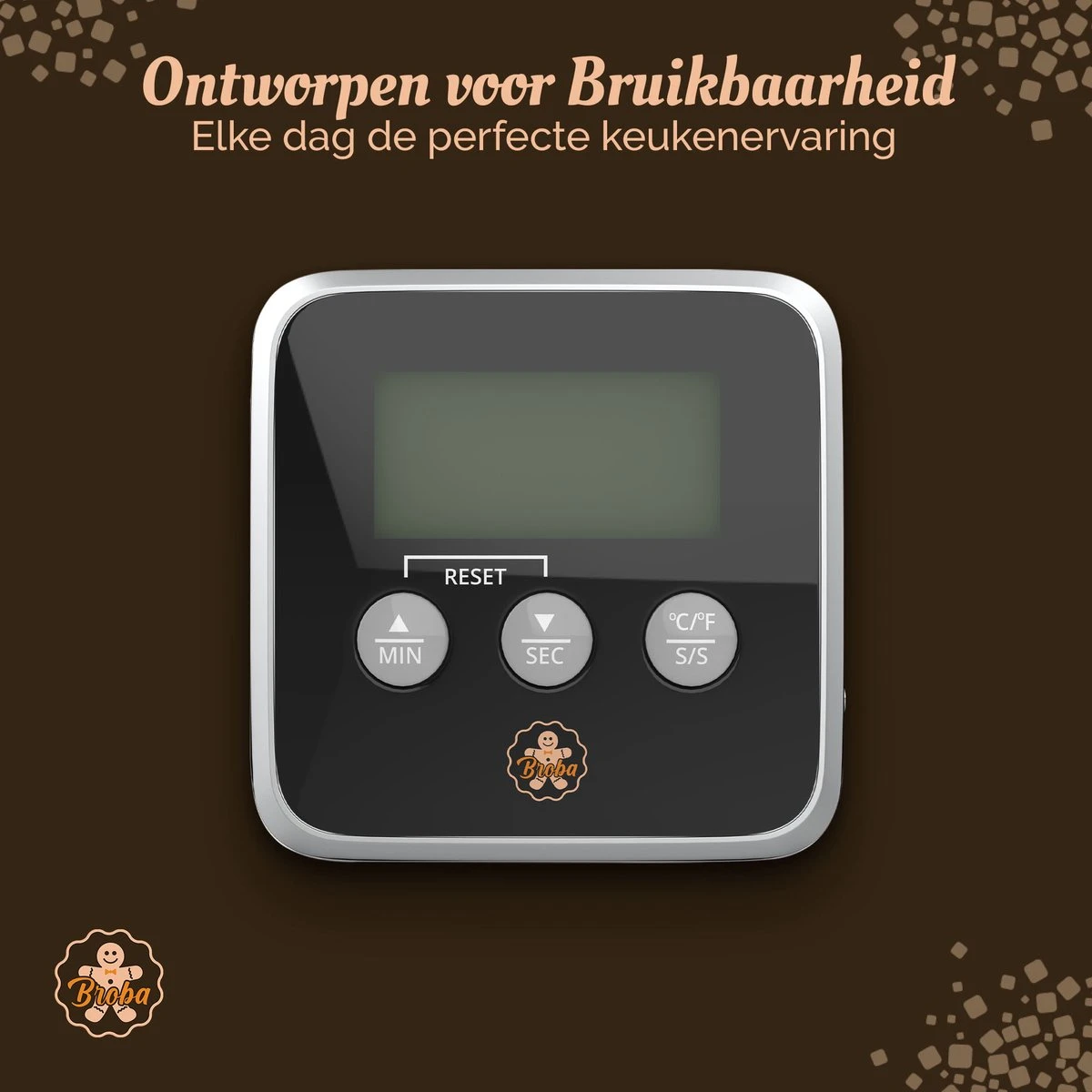 We willen dat de Broba Thermometer geoptimaliseerd is voor diegenen die gepassioneerd zijn over bakken. Het ontwerp functioneert als een tiptop verlengstuk van jou als gebruiker, zodat jij je kunt concentreren op jouw baksels. Elke functie is zorgvuldig overwogen om jouw keukenervaring te verbeteren.