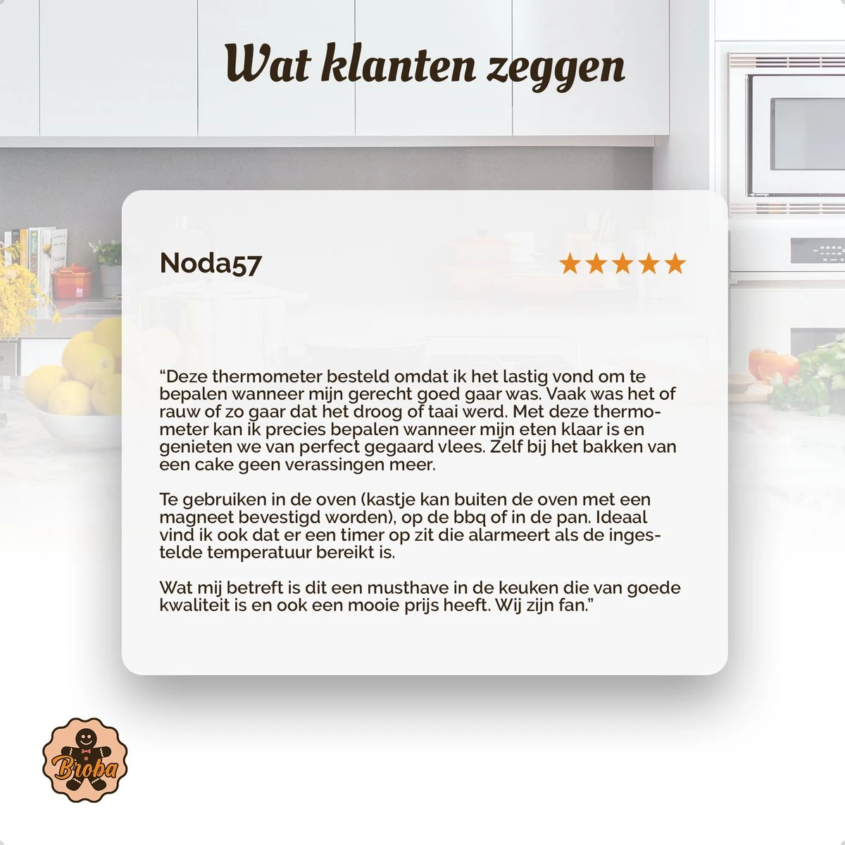 Bij Broba nemen we extra maatregelen om kwaliteit, duurzaamheid en nauwkeurigheid te garanderen. Onze producten gebruiken roestvrijstaal van 304 kwaliteit, superieur aan het roestvrij staal dat in veel andere thermometers wordt gebruikt (veelal 201).