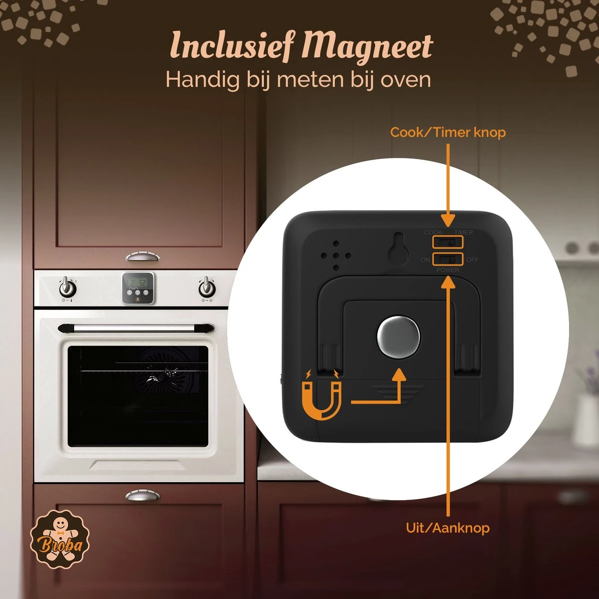 - Inclusief magneet: handig bij meten bij oven