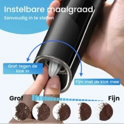 3. Stel de ruwheid van de molen in door de knop aan de onderzijde naar links of naar rechts te draaien.