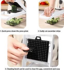 Ook voor mensen met kracht verlies in handen en/of vingers is bij deze groentesnijder rekening gehouden. Zoals eerder beschreven, waar de meeste mandolines 1 snij optie op het deksel hebben, is deze voorzien door een 2 in 1 snij optie. Er hoeft dus niet vaak van mes verwisselt te worden. Door de lengte is er amper kracht nodig om de groente door te drukken. Dit alles maakt deze moderne vernieuwde set compleet.