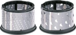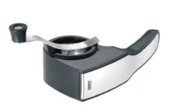 Deze handrasp wordt ook trommelrasp genoemd en is voor zowel links als rechtshandigen. De trommelrasp is uitgerust met twee verschillende raspen, een grove en een fijne rasp voor het raspen van bijvoorbeeld harde kazen, noten of chocolade. Ook bevat deze handige rasp een afsluitbaar reservoir waar de ingeredienten in bewaard kunnen worden. Het reservoir kan ook direct op de rasp worden bevestigd, voor het direct raspen in het bewaar reservoir. Deze rasp is voor zowel links als rechts handigen en is gemakkelijk schoon te maken door deze mee te wassen met de rest van de vaat in de vaatwasser.