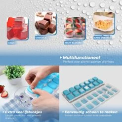 Onze IJsblokjesvorm is niet alleen handig voor het maken van ijsblokjes, maar ook geschikt voor het invriezen van andere soorten voeding. Denk bijvoorbeeld aan tomatenpuree, bouillon of babyvoeding. - Makkelijk afsluitbaar