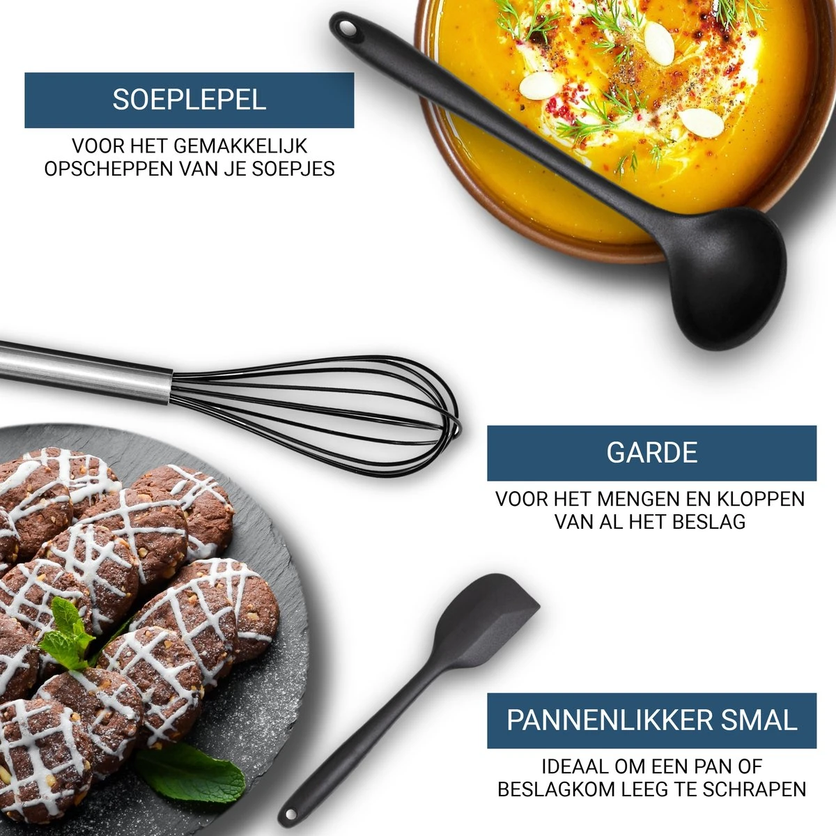 - BPA-vrij, Latex-vrij & Plastic-vrij waardoor dit kookgerei geen schadelijke effecten heeft op jouw gezondheid.
