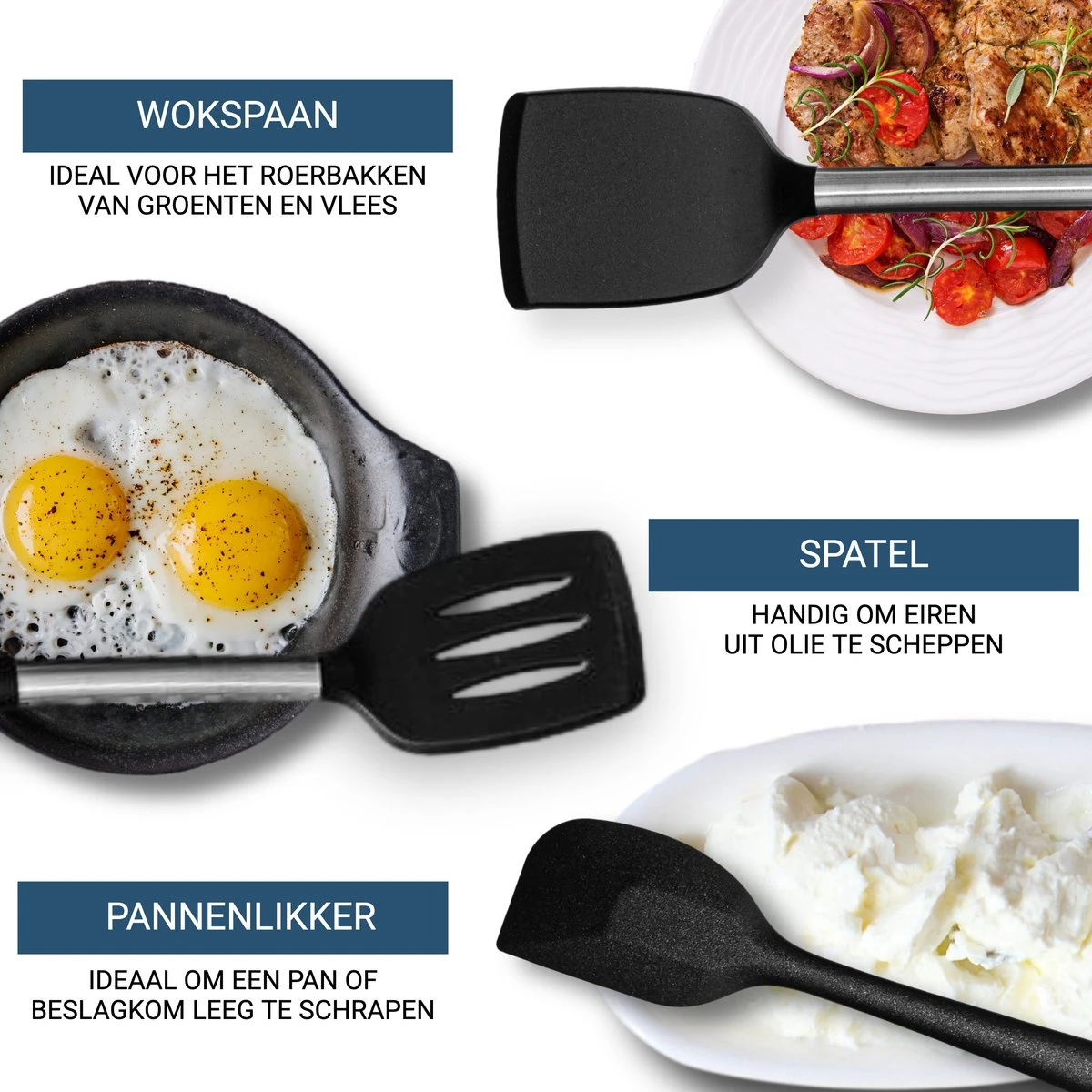 - BPA-vrij, Latex-vrij & Plastic-vrij waardoor dit kookgerei geen schadelijke effecten heeft op jouw gezondheid.