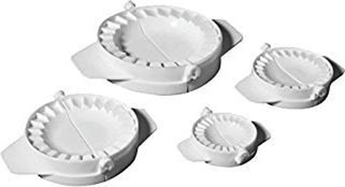 Deze deegvormer is handig bij het vullen van pasta- of bladerdeeg met bv. pesto, gehakt en kaas. De set bevat 4 vormen, in verschillende maten.