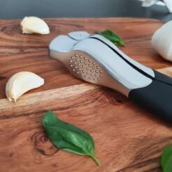 Met deze knoflookpers zult u met gemak uw knoflook persen. Met deze handige tool bespaard u een hoop tijd tijdens het koken van overheerlijke gerechten.