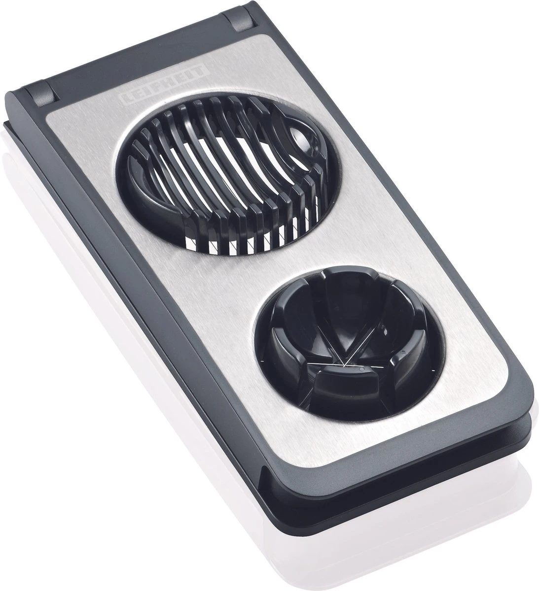 Chique, eenvoudig en elegant – zo presenteren de LEIFHEIT-keukenhulpen uit de serie ProLine zich. De hoogwaardige afwerking overtuigt net zoals het gebruik. Deze Leifheit ProLine Eiersnijder Combi heeft 3 functies, hij snijdt het ei in een handomdraai een mooie ovale en ronde plakje of snijdt het ei in 8 mooie gelijke partjes De RVS snijdraden zorgt voor een makkelijk snijbeweging of u nu eieren, champignons, gekookte aardappelen of kiwi’s snijdt. Het maakt de presentatie van uw gerechten aantrekkelijk omdat alle plakjes allemaal even dik zijn. De eiersnijder is gemakkelijk te reinigen. Het hoogwaardige edelstaal geeft een aangename stabiliteit. Leifheit biedt 2 jaar garantie.