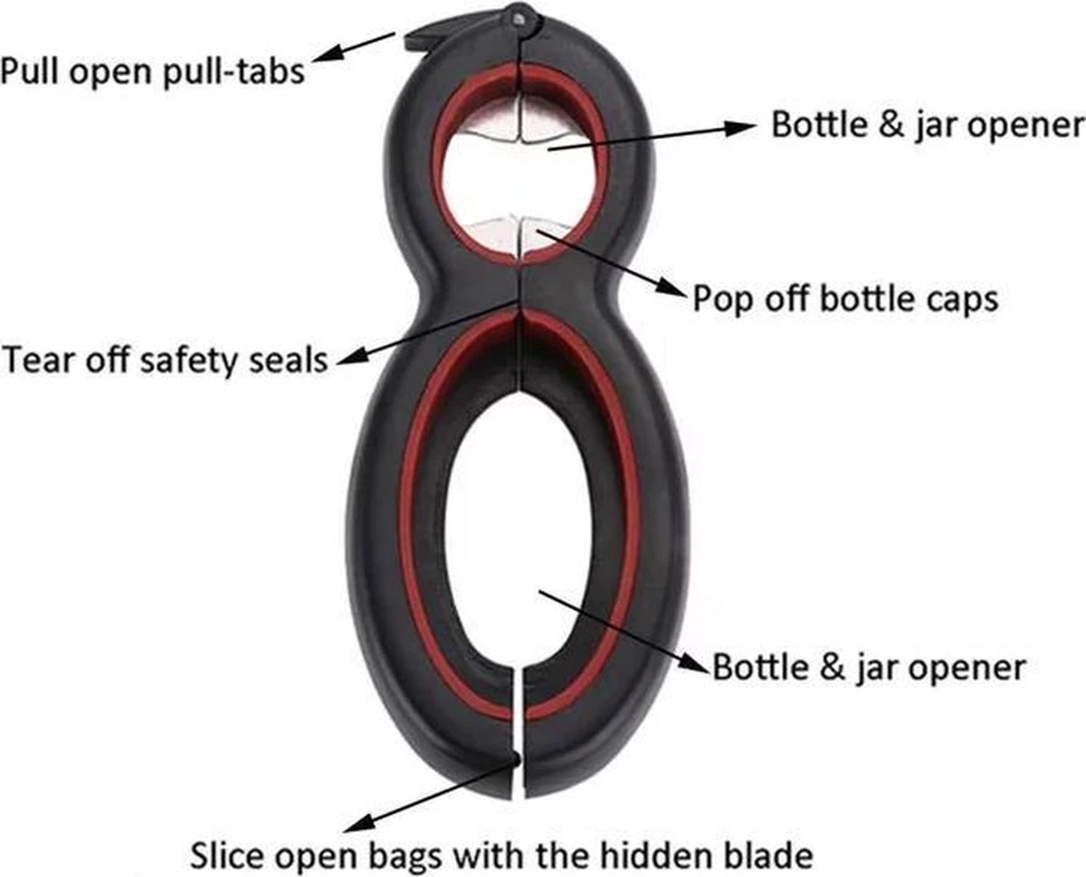 Veelzijdig: Open 6 verschillende soorten doppen en deksels. Een musthave voor iedereen die veel in de keuken staat.