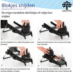 De keukensnijder van Gropro bespaart u uw kostbare tijd bij het bereiden van gerechten. Snel, leuk en gemakkelijk wordt het snijden van groenten vanaf nu. U zult alleen nog maar professionele snij resultaten verkrijgen.
