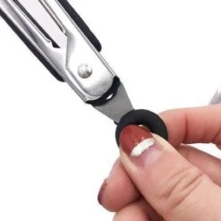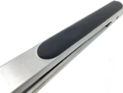 Roestvrijstalen tang met siliconen afwerkingen. Het zachte siliconen is geschikt voor gebruik in pannen met een antiaanbaklaag. Je kan de serveertang makkelijk opbergen doordat je de tang op slot kunt zetten, waardoor die ingeklapt blijft.