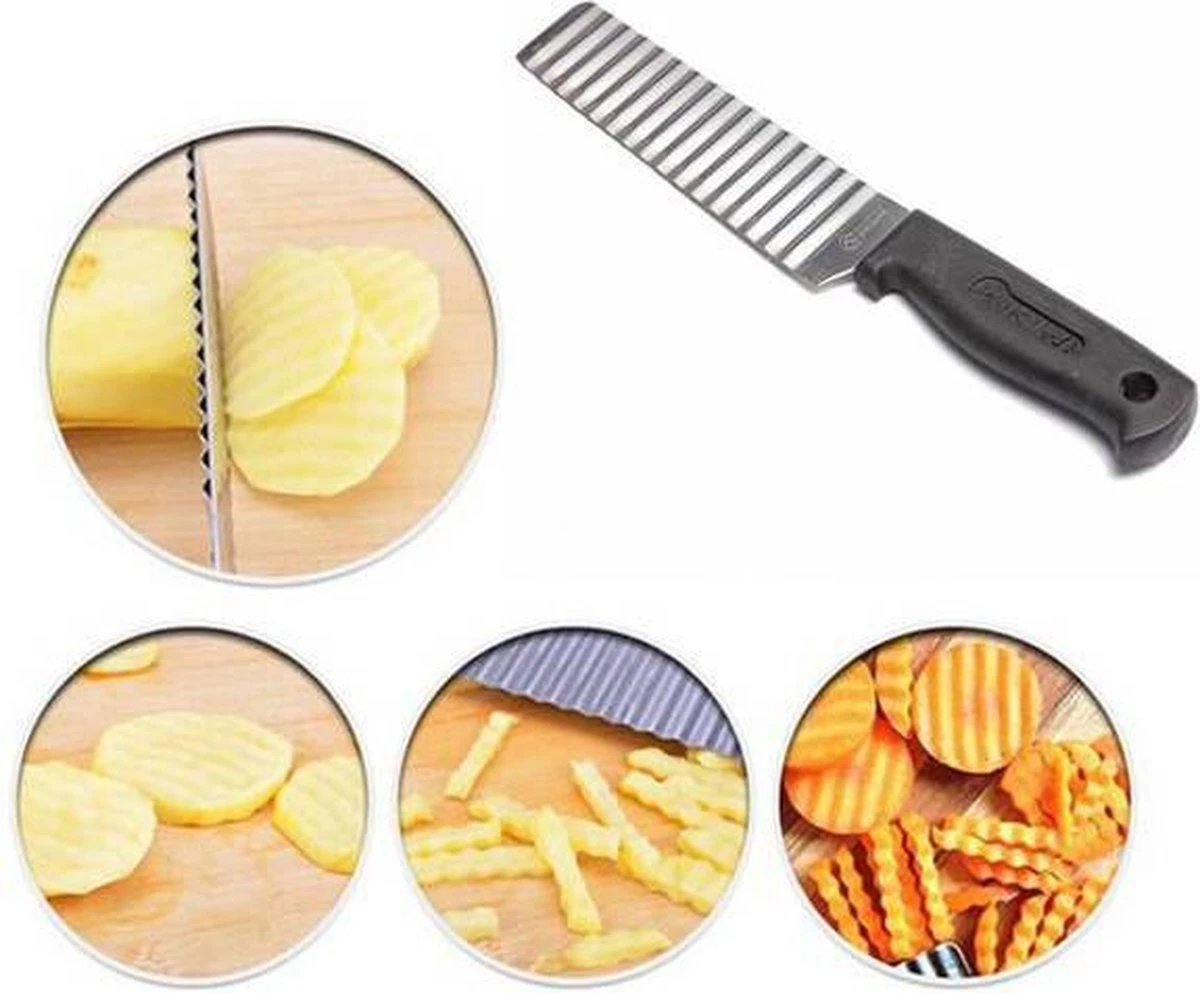 Zelfgemaakte chips, geribbelde komkommerschijfjes? Dat en nog veel meer maak je met dit decoratiemes. Het mes is sterk, scherp en van duurzaam materiaal.