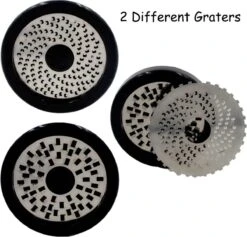 Met twee verwisselbare messen kunt u de kaas in fijne of grove stukken raspen.