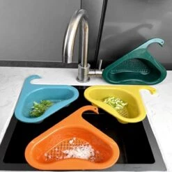 De Kunststof vergiet is gemaakt van PP-materiaal van voedingskwaliteit, dus u hoeft zich geen zorgen te maken over schadelijke stoffen. Elke kunststof vergiet is getest door onze professionals, zodat u en uw gezin een veilige en gezonde ervaring kunnen hebben. Het driehoekige zwaanvormige ontwerp maakt volledig gebruik van de ruimte in de hoek van de gootsteen, en neemt niet de extra ruimte in de gootsteen in beslag. Levendig en grappig design, snelle ontlading van het water door de poriën, niet gemakkelijk te verstoppen. De lange haak van het vergiet is geschikt voor de meeste gootsteen en afwasbak. Breng een driehoekige structuur aan om de stabiliteit te vergroten. Maak je geen zorgen over vallen, doorzakken of loskomen. De kunststof vergiet is multifunctioneel en kan in de gootsteen worden geplaatst voor het filteren van resten, het wassen van fruit, enz. De kunststof vergiet heeft een breed scala aan toepassingen en is erg handig om het aanrecht van de gootsteen schoon en netjes te houden. Maar denk ook aan het gemak voor u op de camping in de caravan, camper, boot of tent. Al met al een aanwinst voor in de keuken en mag zeker niet ontbreken bij u in de afwasbak. Als u kwaliteitsproblemen heeft, neem dan gerust contact met ons op. Veel plezier met winkelen.