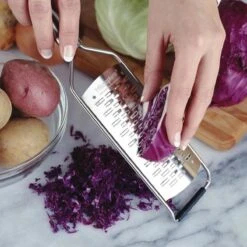 Microplane Rasp MediumIn de serie Professional van het merk Microplane bevinden zich een aantal raspen, waaronder de Microplane Rasp Medium. De raspen van Microplane zijn de enige raspen welke lasergesneden zijn. Dit onderscheid de raspen van vele andere merken en heeft dan ook een positief effect op de levensduur van de raspen. Deze rasp is gemaakt van RVS en heeft een totale lengte van 30.5 cm. Het blad is 12.6 x 6 cm groot en is gemaakt van 18/10 RVS. De rasp is o.a. geschikt voor het raspen en schaven van kaas, aardappels, knoflook, kruiden en specerijen.Microplane Rasp OnderhoudDe rasp wordt geleverd met een kunststof beschermkap, welke beschadigingen aan de rasp tegengaat. Na het gebruiken van de rasp, kunt u deze eenvoudig reinigen in de vaatwasser.Bestel de Microplane Rasp Medium nu bij Cookinglife of bekijk ons overige aanbod aan raspen. Neem ook eens een kijkje bij de overige producten van Microplane Professional of bekijk ons gehele assortiment van Microplane.