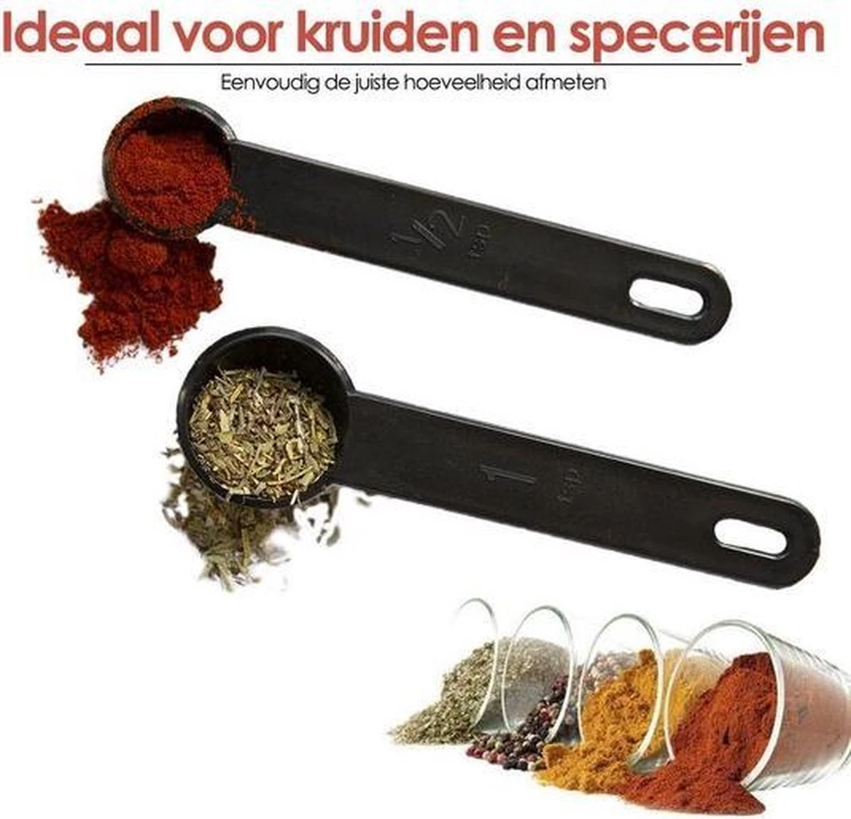 Een complete 10-delige set van maatbekers (cups) en maatlepels (teaspoons & tablespoons). Geschikt voor het afmeten van vele ingredienten tijdens het koken en bakken. De Amerikaanse maten zorgen ervoor dat de juiste hoeveelheid makkelijk af te lezen is.
