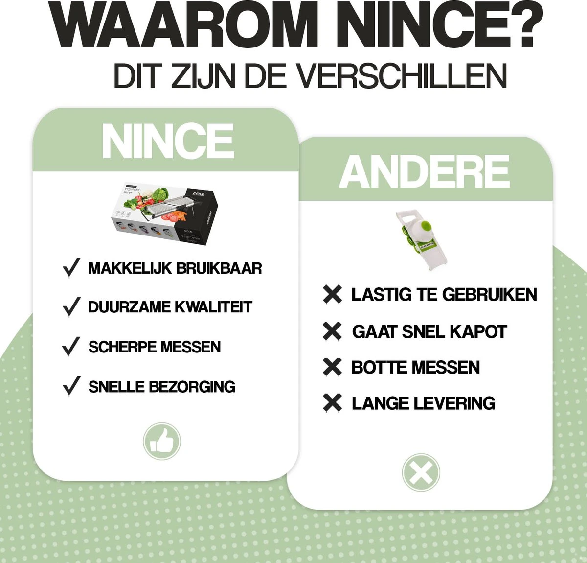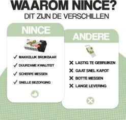 De Nince Mandoline is dé oplossing voor alle snijbehoeften in de keuken. Van dunne plakjes komkommer tot fijne groentesnippers en geraspte kaas – deze slimme groentesnijder kan het allemaal. Dankzij het multifunctionele ontwerp en hoogwaardige materialen is deze mandoline geschikt voor elk soort ingrediënt.