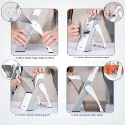 Waarom moeilijk doen als het ook makkelijk kan? Met de groentesnijder snij je veel sneller en veel veiliger groenten in verschillende vormen: blokjes, reepjes, julliene of schijfjes. Bovendien kan je de snijdikte zelf instellen tussen de 0.5 en 8 mm. Zo verkrijg je met de groentesnijder flinterdunne plakjes aardappel voor heerlijk zelfgemaakte chips, of snij je wortel in kleine blokjes voor een heerlijke soep.