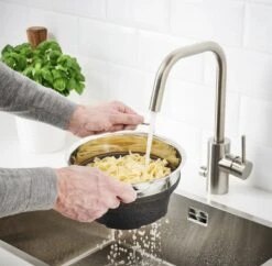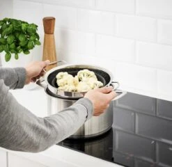 Te gebruiken als stoominzet (halfopen) en pasta-inzet (helemaal open) in de meeste pannen van 3-5 liter.