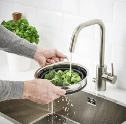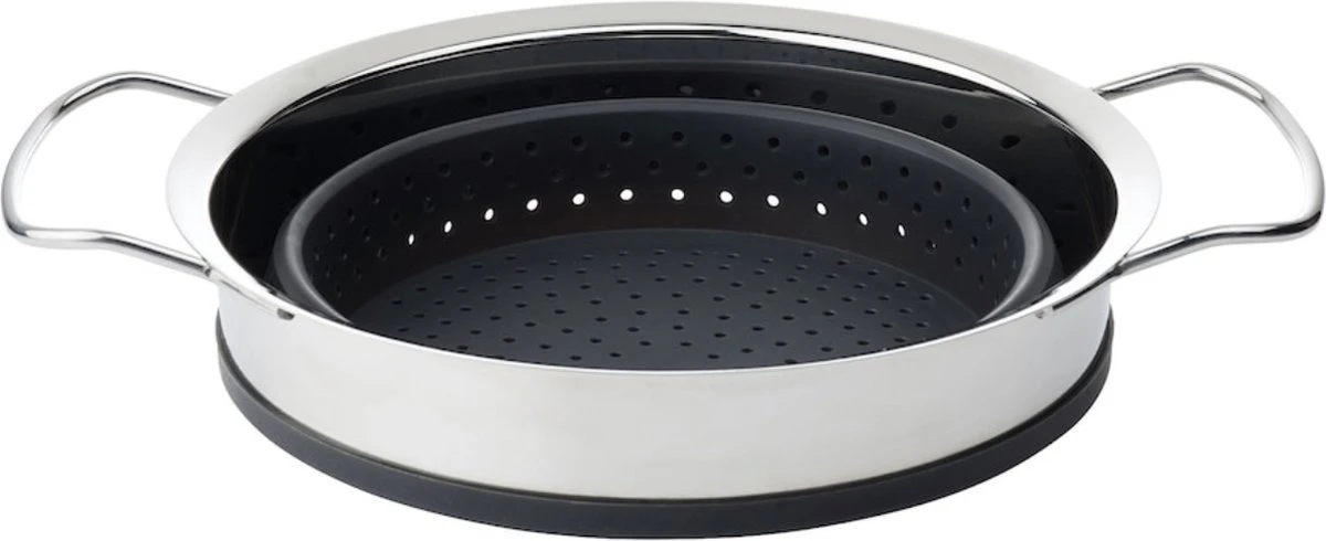 De vergiet kan drie verschillende hoogtes hebben. Opvouwbaar, dus na gebruik eenvoudig op te bergen. Een stabiele bodemrand maakt dat het vergiet stevig blijft staan.Voor het stomen van groente waardoor smaak en voedingsstoffen behouden blijven.Geschikt voor kookgerei van zowel 3 als 5 liter.Het vergiet is gemaakt van siliconen die bestand zijn tegen temperaturen tot 220 °C.