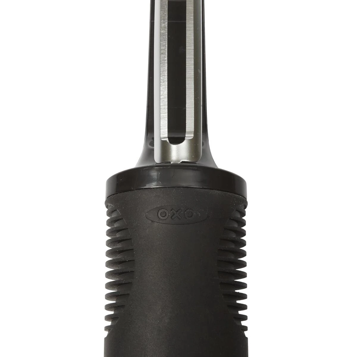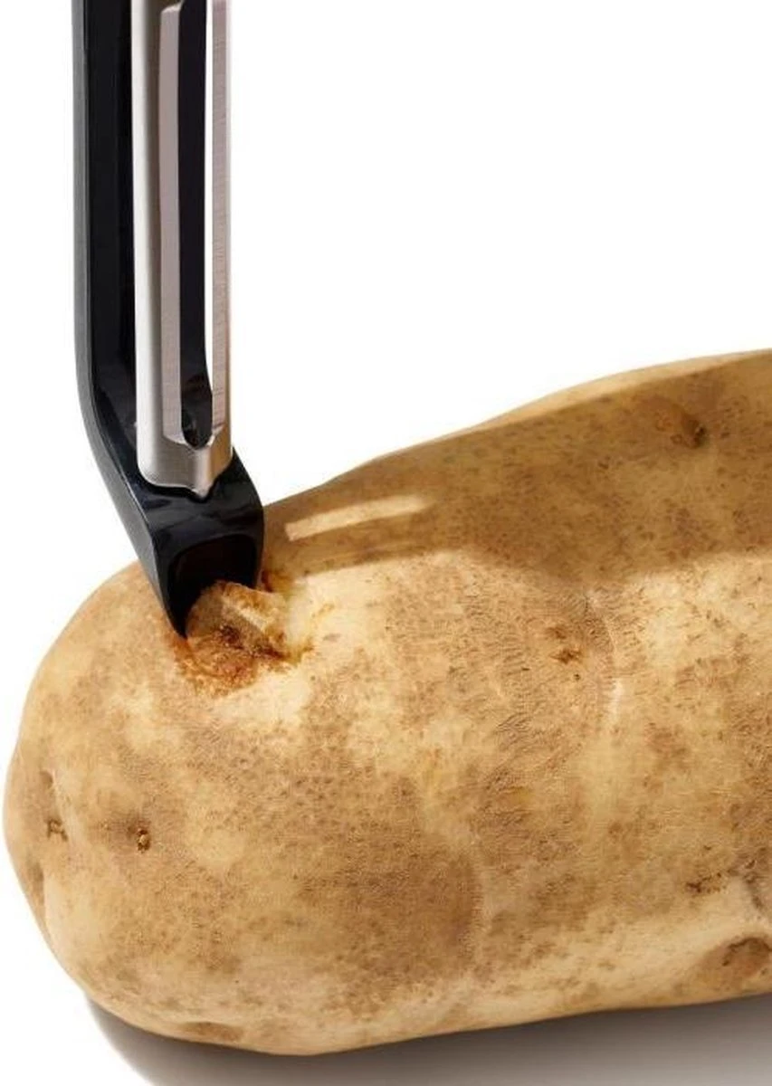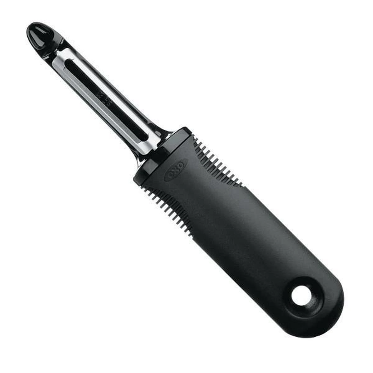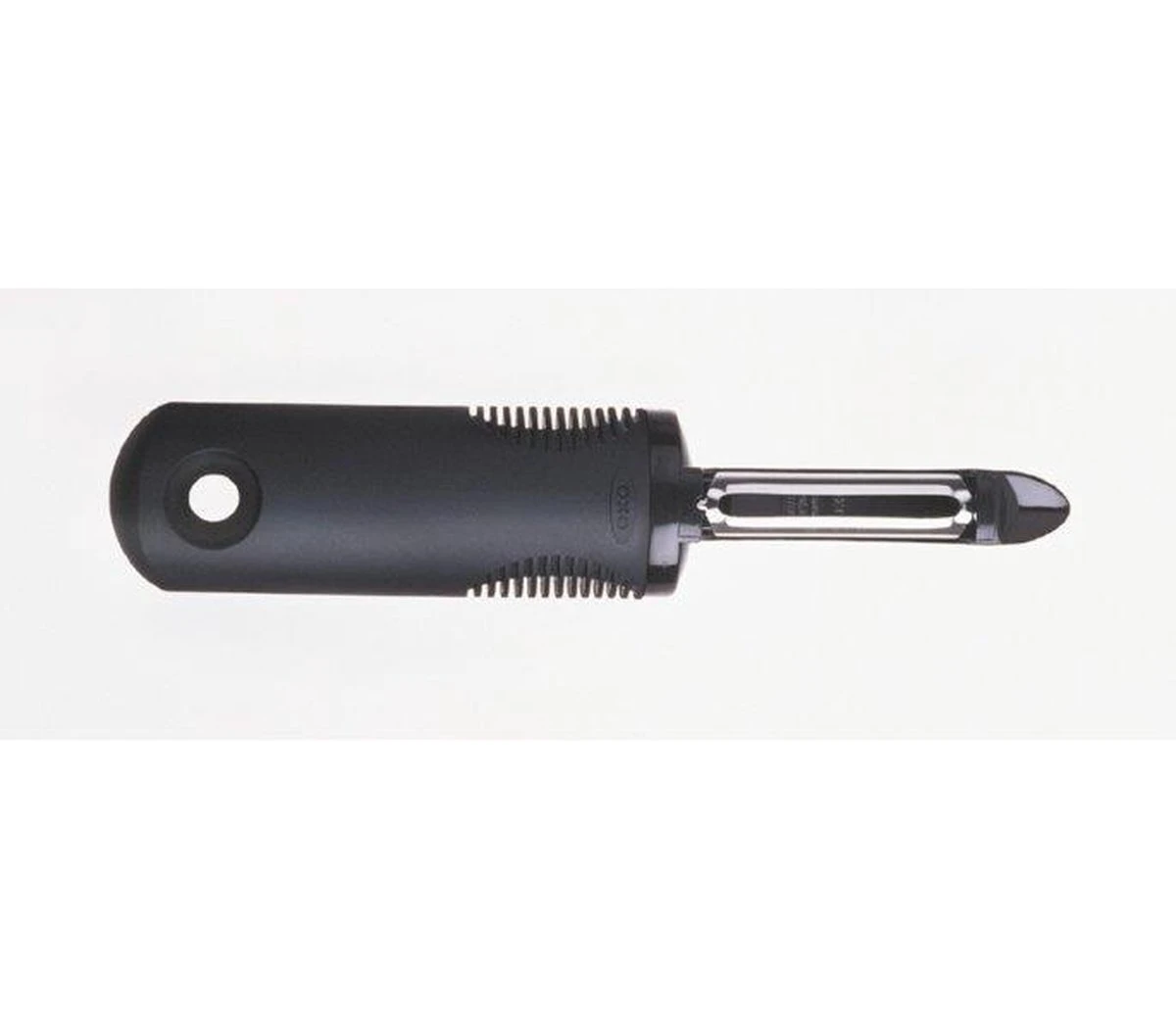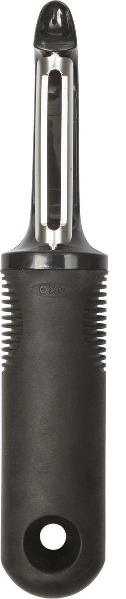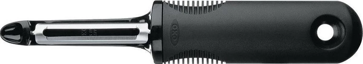 Deze dunschiller van OXO Good Grips is eenvoudig de beste dunschiller die je ooit hebt geprobeerd! Het scherpe, roestvrijstalen blad schilt zelfs de hardste fruit en groenten met gemak. De zachte, comfortabele greep steunt je hand tijdens het schillen en is anti-slip, zelfs wanneer je handen nat zijn. De dunschiller is ook te gebruiken als je linkshandig bent en is voorzien van een handige aardappeloog verwijderaar!