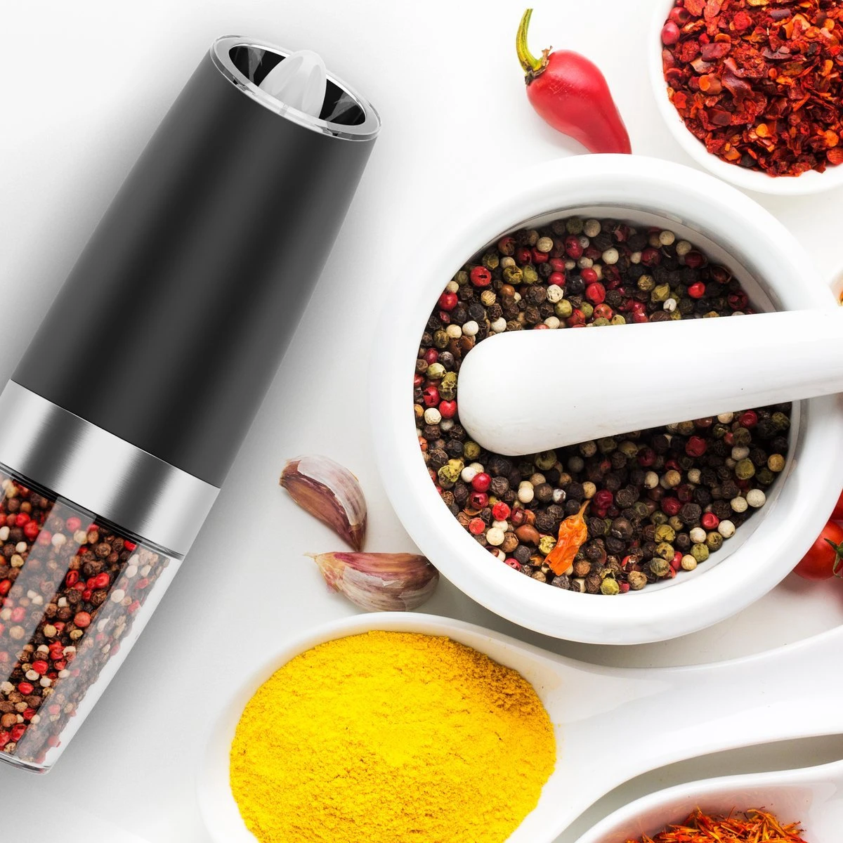 SNEL MALEN MET 1 HAND – elektrische zwaartekrachtmolen maakt het snelste malen van peperkorrels en andere kruiden mogelijk. Kantel gewoon de molen om het maalmechanisme te activeren. In het heetst van de strijd in de keuken kun je het gerecht kruiden zonder beide handen te gebruiken.