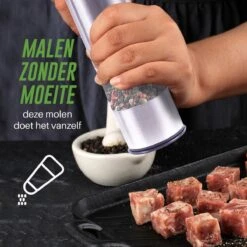 Deze Peper- en Zoutmolen Set beschikt over een handige éénknopsbediening. Gebruik de pepermolen terwijl je ene hand bezig is met koken en gebruik de andere hand om peper/zout toe te voegen aan het eten.