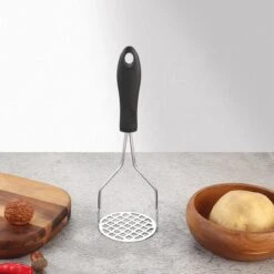 De aardappelstamper heeft een stevig handvat voor een comfortabele grip tijdens het gebruik en een brede, platte basis om aardappelen en groenten efficiënt te pletten. Het is gemakkelijk te gebruiken en helpt u om snel en moeiteloos perfecte puree te maken.