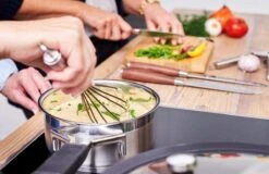 Ideaal voor soepen, sausjes crèmes en pannenkoekendeeg. Hittebestendig tot 260 °C. Duurzame verbinding van roestvrijstaal en silicone. Kenmerken: – Roestvrijstaal 18/10 – Silicone – Tijdloze combinate van mat/hoogglans roestvrijstaal – Gebalanceerd ontwerp, zodat deze stabiel in de hand ligt en prettig werkt. – Voorzien van ophangoog – Vaatwasmachinebestendig