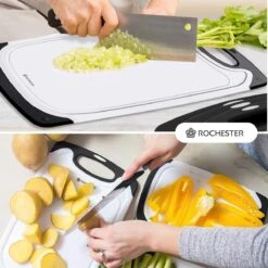 De snijplanken zijn gemaakt van hoogwaardig kunststof materiaal en bevatten geen BPA. Het duurzame design zorgt voor ultiem comfort en gemak in jouw keuken. De snijplanken van Rochester zijn daarnaast aan beide kanten te gebruiken, waardoor je dubbel zoveel oppervlakte hebt waarmee je kunt werken.