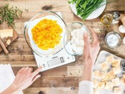 Het plezier van mooie praktische spullen bij het bereiden van lekkere gerechten – met digitale keukenweegschaal Page Profi 300 van Soehnle wordt koken en bakken een waar genoegen. Wat vind jij het belangrijkst: het extragrote display, het hoge maximumgewicht of de praktische HOLD-functie? Je hoeft niet te kiezen, de Page Profi 300 heeft het allemaal! De innovatieve HOLD-functie bevriest de gewichtsaanduiding gedurende 10 seconden. Superpraktisch in combinatie met het maximale gewicht van 20 kg. Want je kunt zo ook heel gemakkelijk grote voorwerpen wegen die het zicht op het display versperren. Het gewicht wordt aangegeven op het extragrote, wit oplichtende lcd-display, tot op 1 gram nauwkeurig. Het display is ook bij minder goed licht prima af te lezen. Comfortabele bediening is natuurlijk heel belangrijk. Daarom heeft de Page Profi 300 twee sensor-touch-velden die al reageren bij een lichte aanraking.