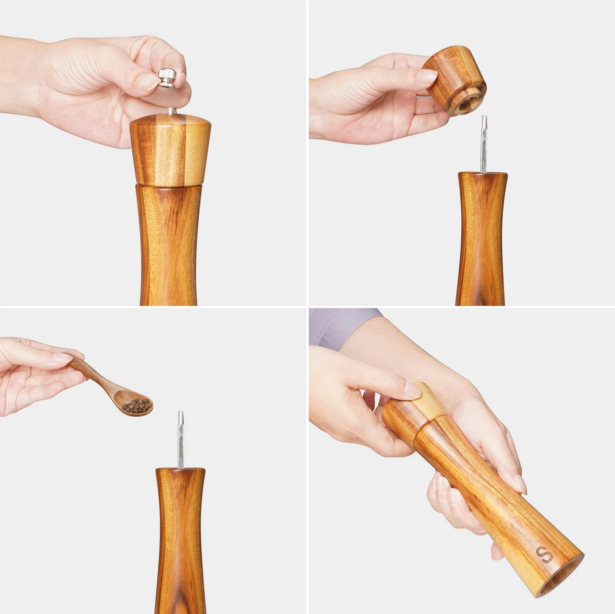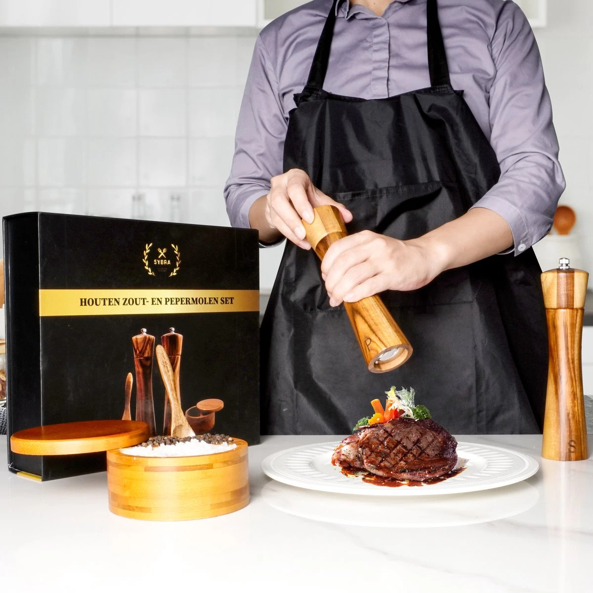 Op zoek naar een stijlvolle en duurzame peper- en zoutmolen set? Deze luxe set van Sybra is dĂŠ peper- en zoutmolen set voor iedere keukenprins(es). De set is handgemaakt van kwalitatief hoogstaand en duurzaam acacia hout. Een absolute eyecatcher in jouw keuken!