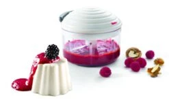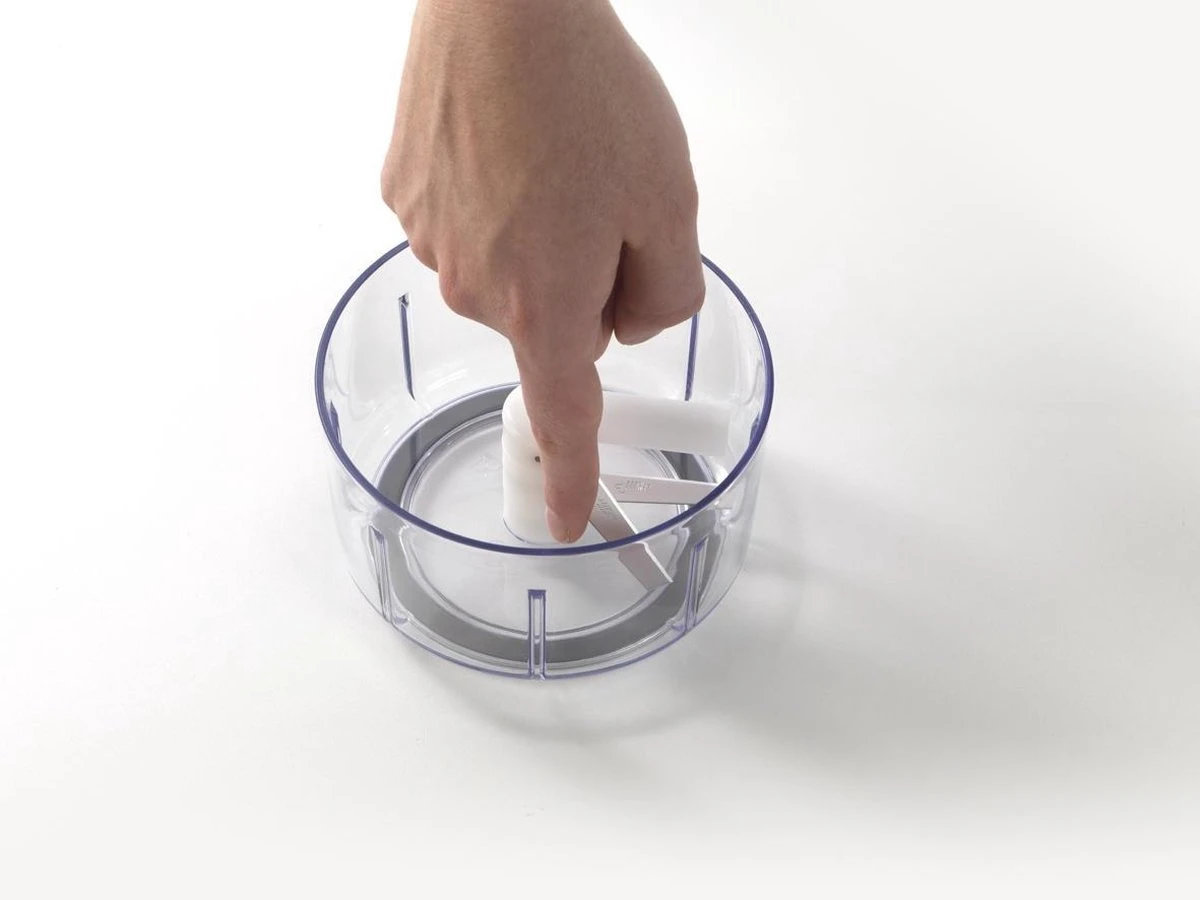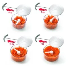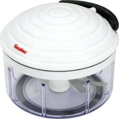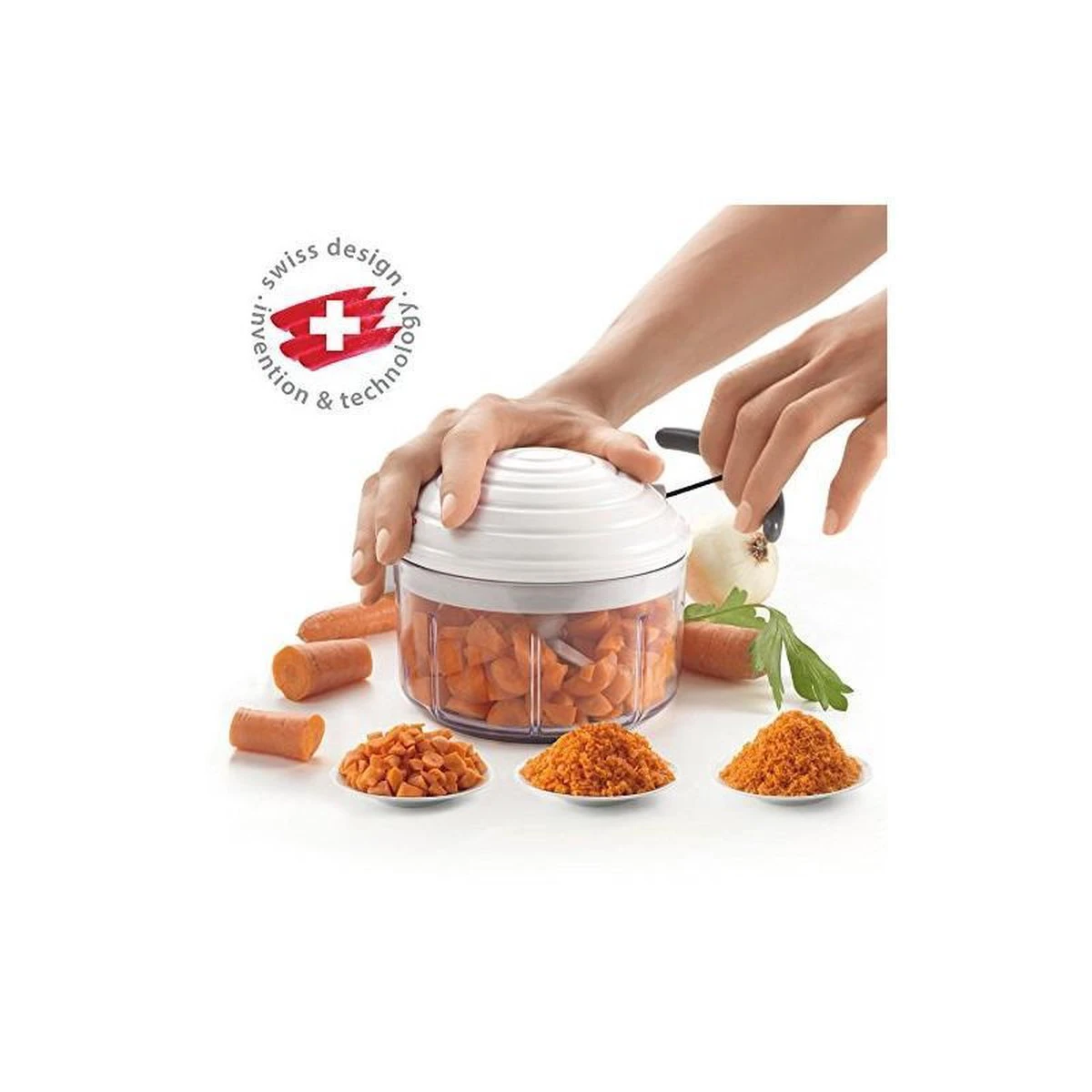 Rotomac van Metaltex is een revolutionaire hakker met beweegbare messen. Snijdt in enkele seconden van grof tot fijn. Eenvoudig in gebruik en snel bij het bereiden van soepen, sauzen, tapenades, pesto’s enz. Rotomac werkt zonder electriciteit of batterij. De mesjes werken enkel door het trekken aan een stevig touw met handvat. Je kunt alles, behalve het deksel, in de vaatwasmachine stoppen. Het deksel kan met een vochtig doekje schoon gemaakt worden. Swiss Design, Invention & Technology. 2 jaar garantie.
