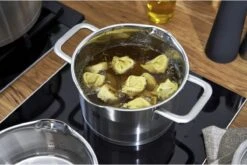 De kookpotten zijn er in drie maten, de stoofpot en de steelpan in deze set mogen uiteraard in de vaatwasmachine en zijn geschikt voor inductiekookplaten.